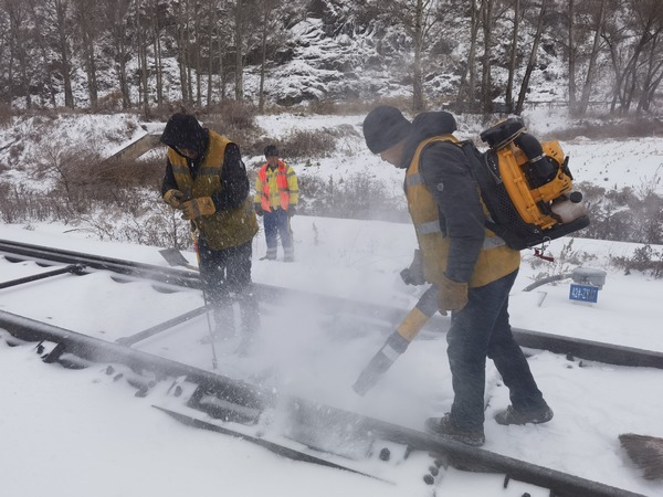 人民網(wǎng)哈爾濱11月6日電 (尚城)11月6日,黑龍江省迎來(lái)暴雪、雨雪冰凍、大風(fēng)天氣,此次過(guò)程影響范圍廣、降雪量大,局地降水量可能接近或突破歷史同期極值。中國(guó)鐵路哈爾濱局集團(tuán)有限公司第一時(shí)間對(duì)受降雪影響主要鐵路區(qū)段啟動(dòng)預(yù)警,調(diào)集大功率風(fēng)力除雪機(jī)、重型軌道車、除雪車輛、熱滑除冰列車等設(shè)備參與除雪工作。為確保旅客列車和人民群眾出行絕對(duì)安全,哈鐵有序開(kāi)展行車調(diào)度、清冰除雪、設(shè)備巡檢、旅客疏導(dǎo)、安全防護(hù)等應(yīng)急處置工作,根據(jù)雪情科學(xué)調(diào)整運(yùn)輸方案,盡最大努力減少惡劣天氣對(duì)運(yùn)輸秩序的影響。
